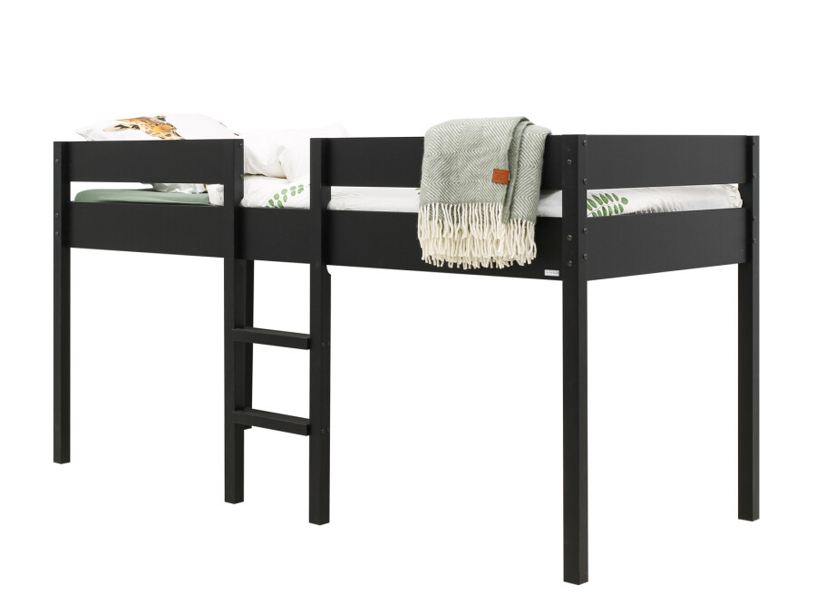 Der Halbhochbett Mick ist aus massivem MDF und starker Buche gefertigt. Eine Stützleiste in der Mitte des Bettes sorgt für extra Stabilität. Die Treppenstufen aus Buche haben ausgefräste Rillen, die einen besseren Grip bieten. Das Bett ist mit einem opaken, matten Lack auf Wasserbasis lackiert. Dieser Lack ist sicher für Kinder und umweltfreundlich.