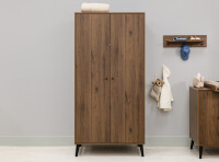 The Zara wardrobe by Bopita has a warm look due to the combination of black details and walnut look. The wardrobe stands on slender tapered black legs. The doors are fitted with a soft-close mechanism and have small, round metal knobs as handles.