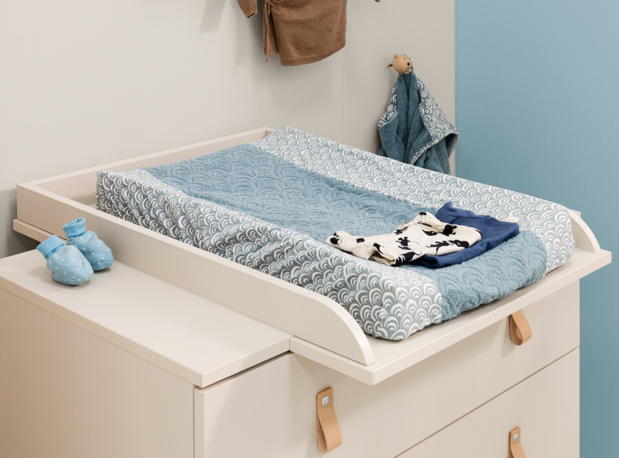 Barrier for the dresser of Amira. Place the barrier on top of the dresser, it can be removed without leaving traces. With a barrier it's easier to change a baby; the cushion won't move because of the higher sides.