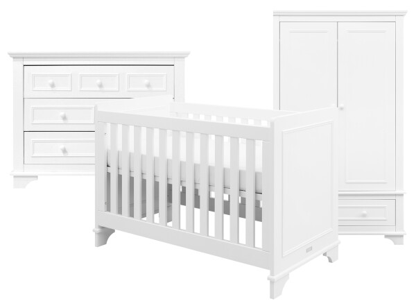 3-part baby room from the Charlotte series consisting of a bed 60 x 120 cm, a dresser with 3 drawers and a wardrobe.