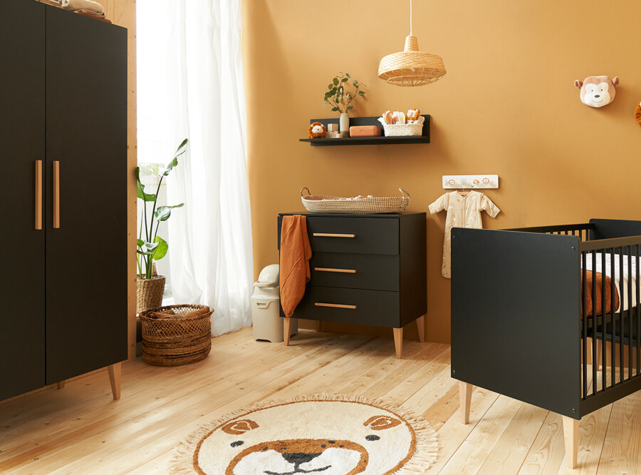 3-part baby room from the Lena series consisting of a bed 60 x 120 cm, a dresser with 3 drawers and a wardrobe.