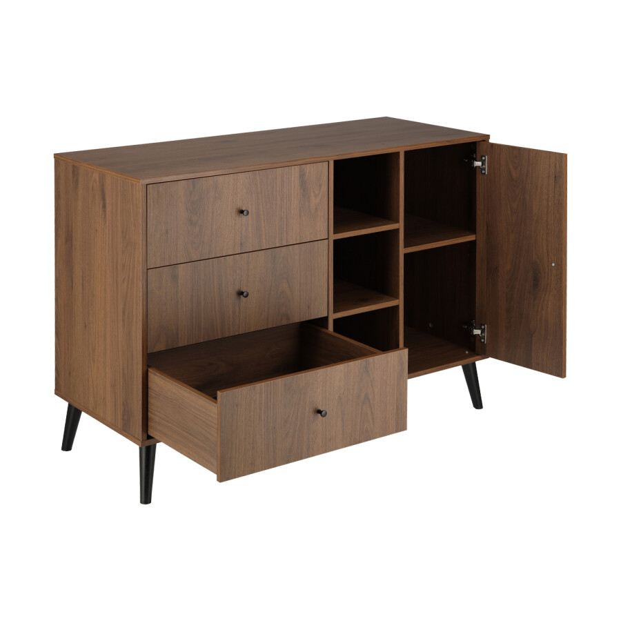 Xl Dresser with 3 drawers/3 open compartments/1 door Zara Walnut/Matt Black